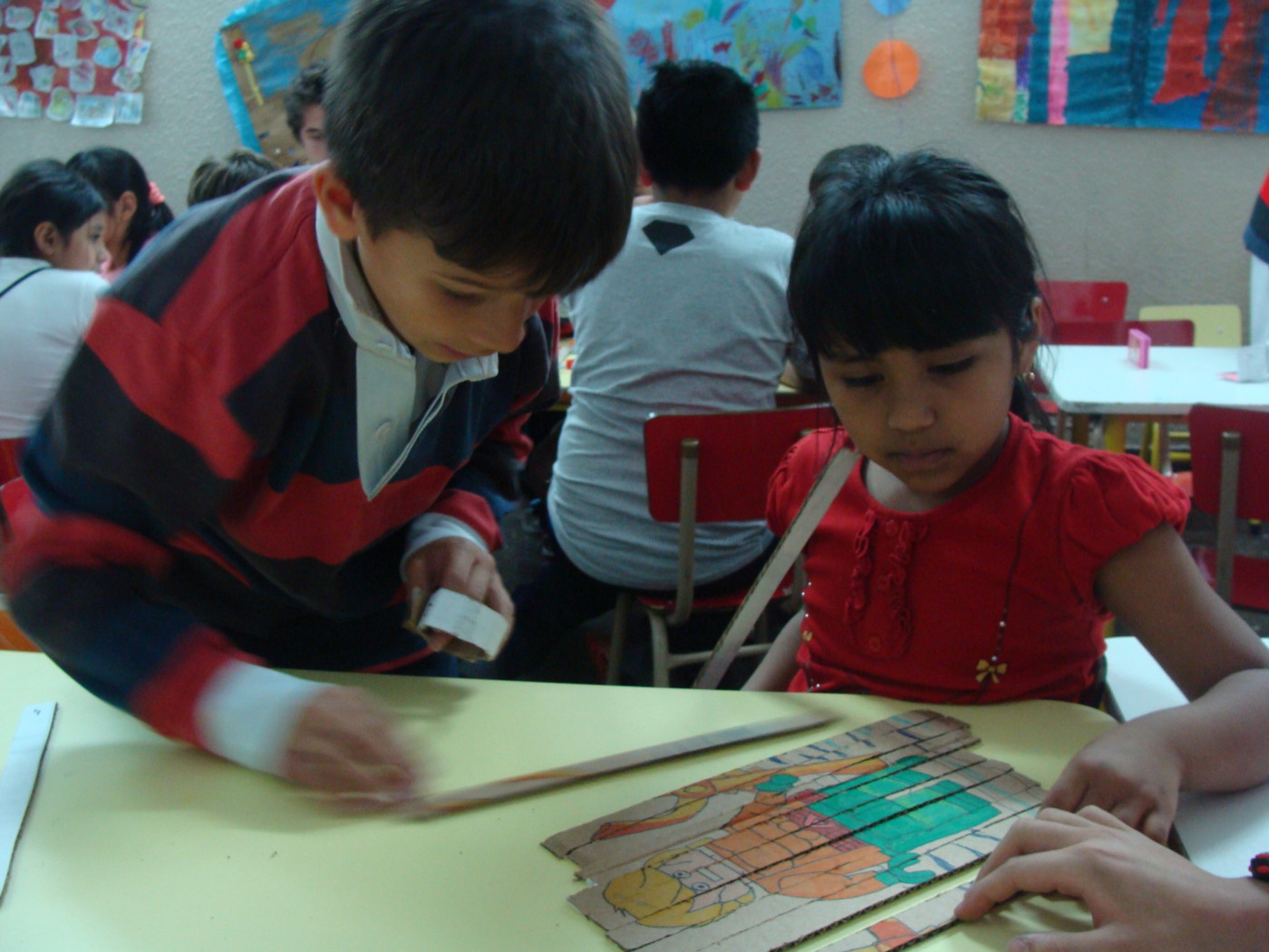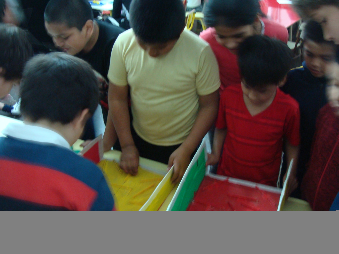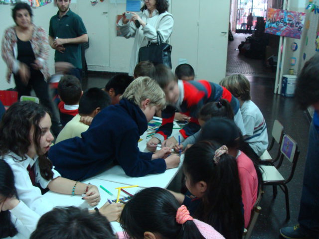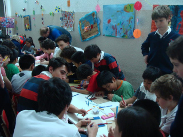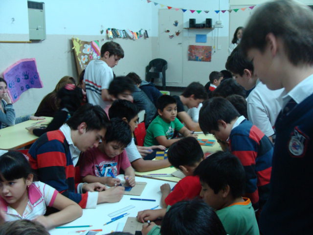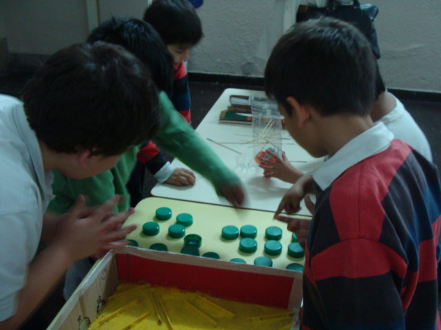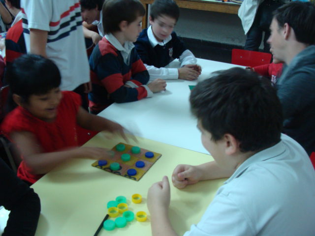 Los alumnos de primaria que participan del proyecto de Ecorresponsables, concurrieron al espacio de Apoyo Escolar de Balvanera para llevar los juegos de mesa que realizaron con materiales reciclados.