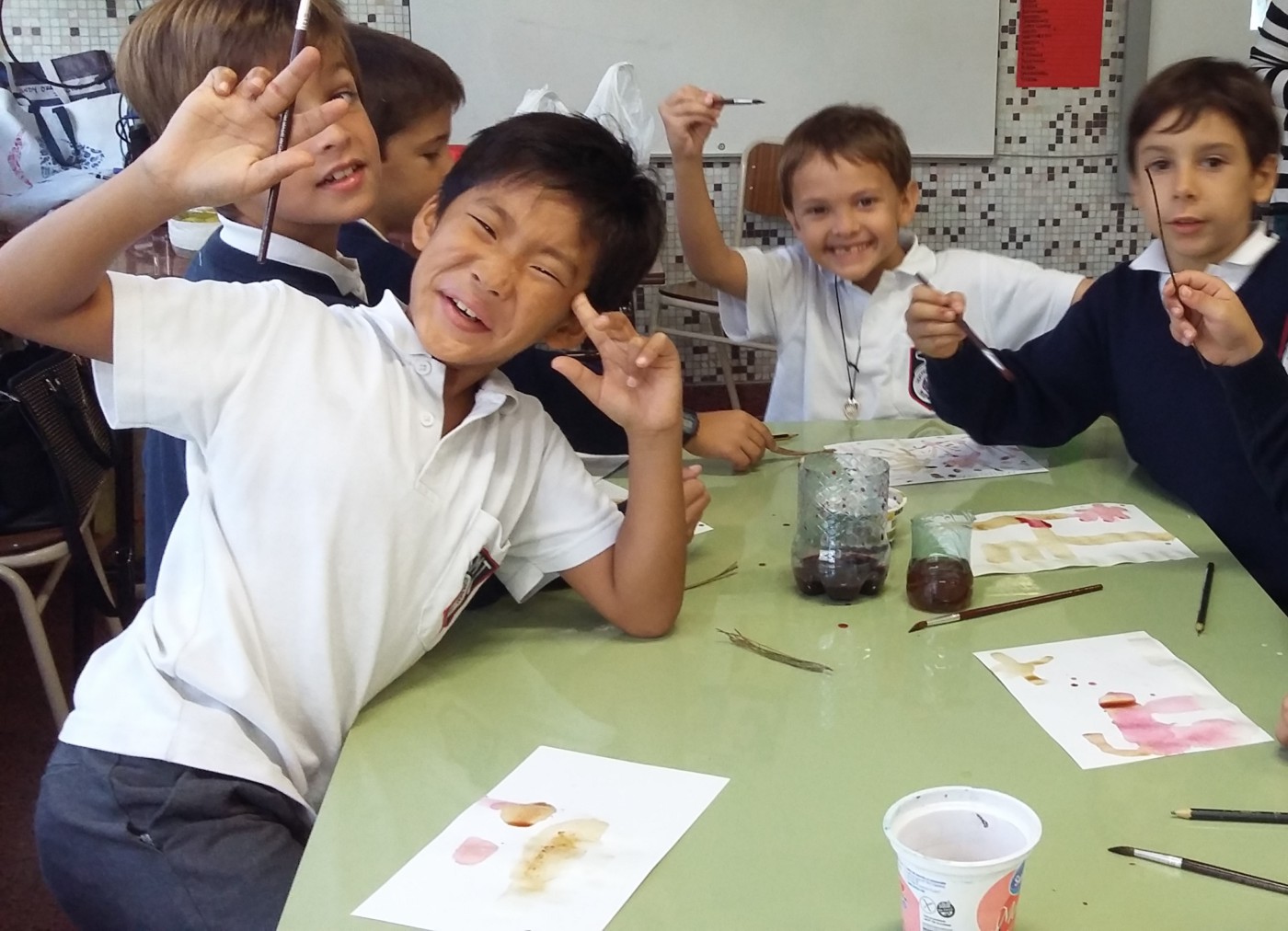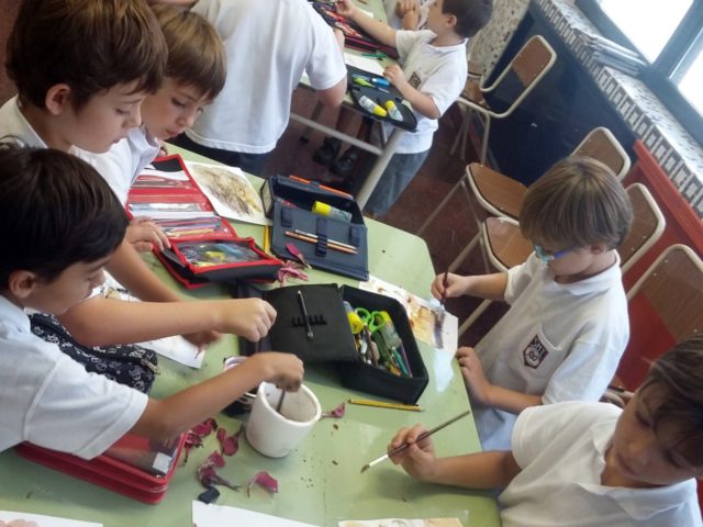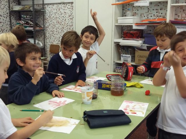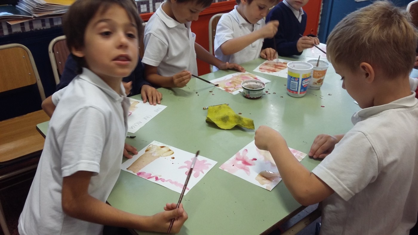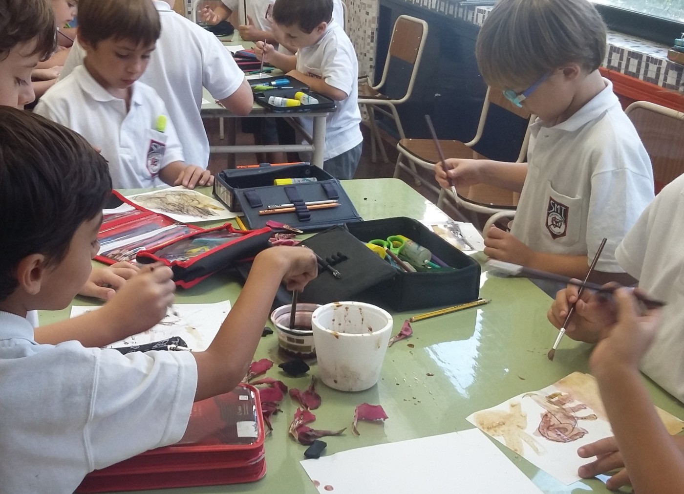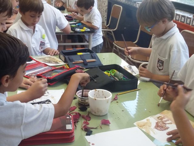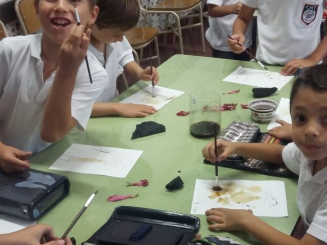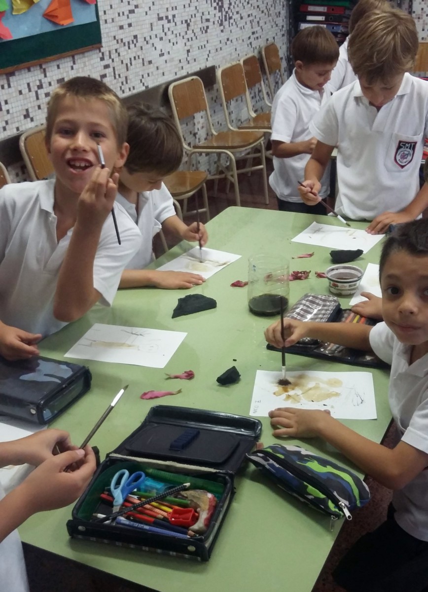 Los chicos de 1ro y 2do grado trabajaron las diferencias entre el mundo natural y el mundo artificial, y sobre los colores en cada uno de ellos, y realizaron una experiencia de pintura con elementos y pigmentos naturales,