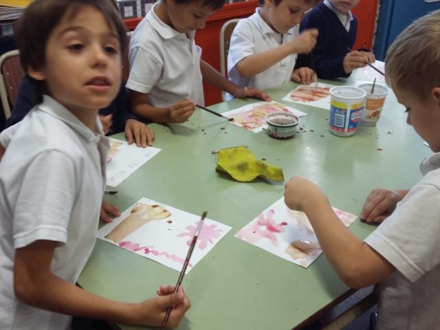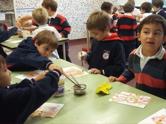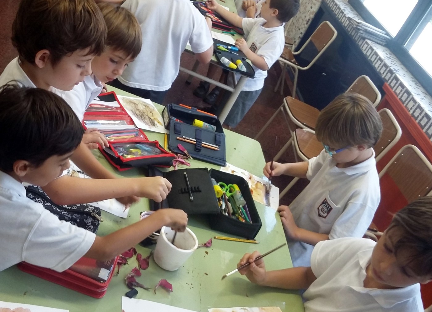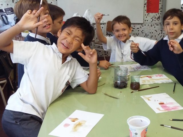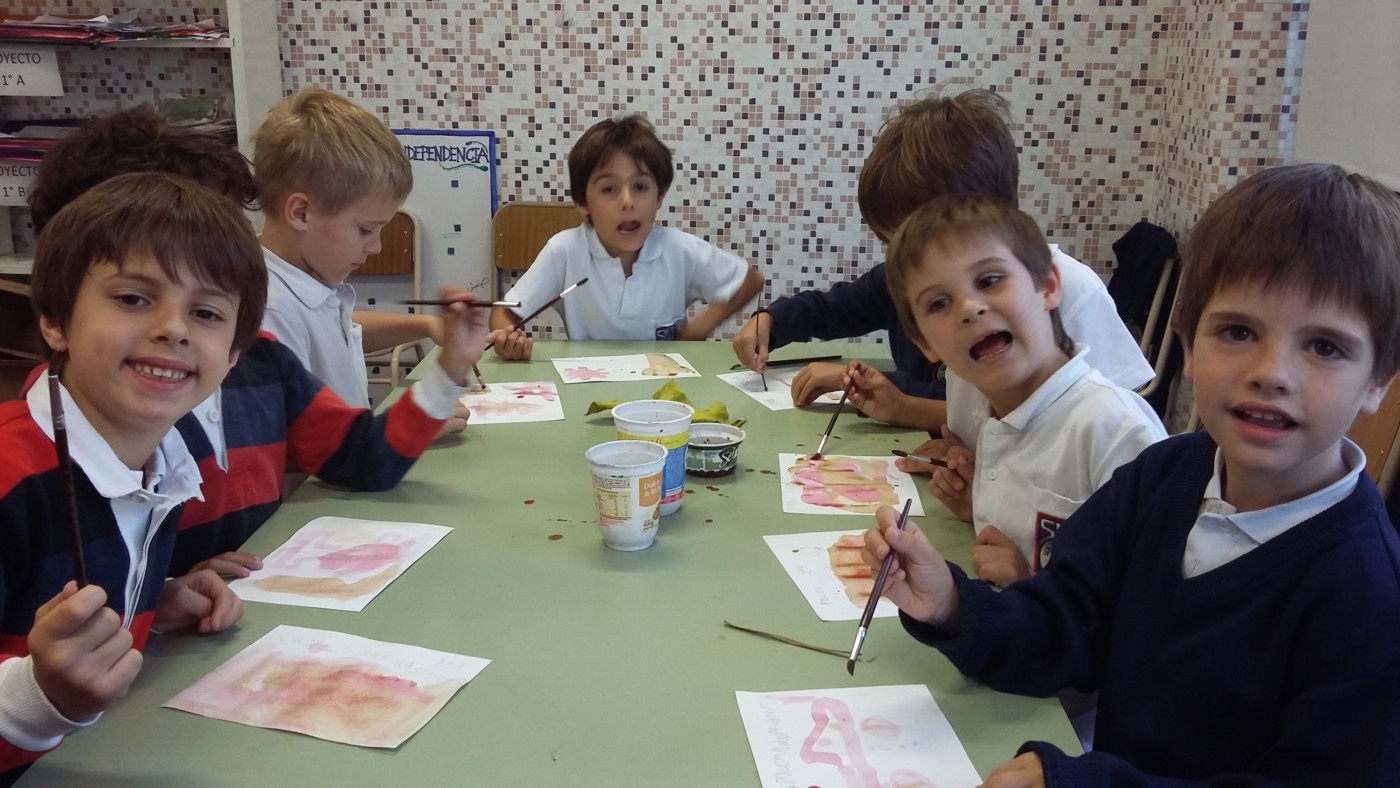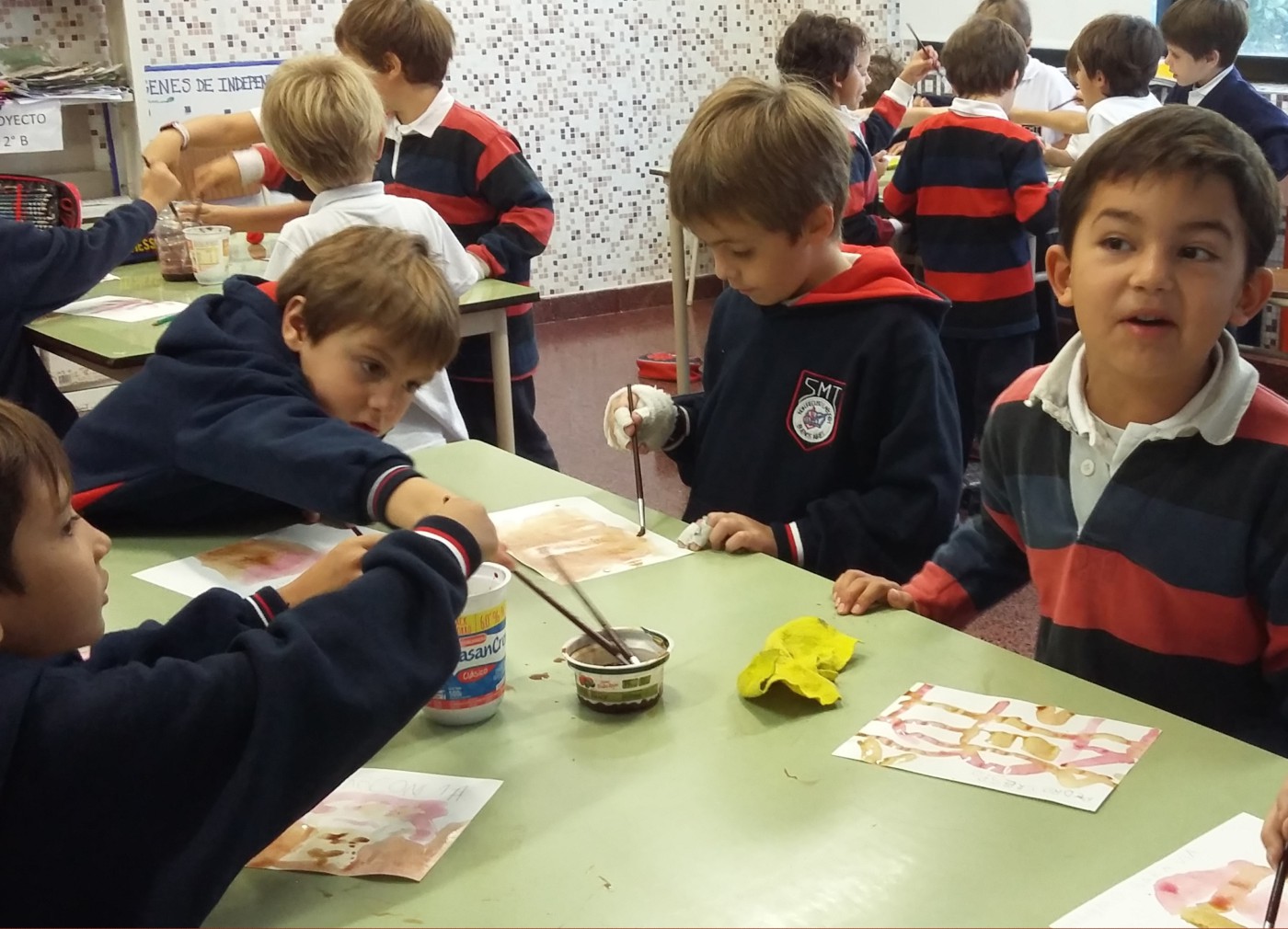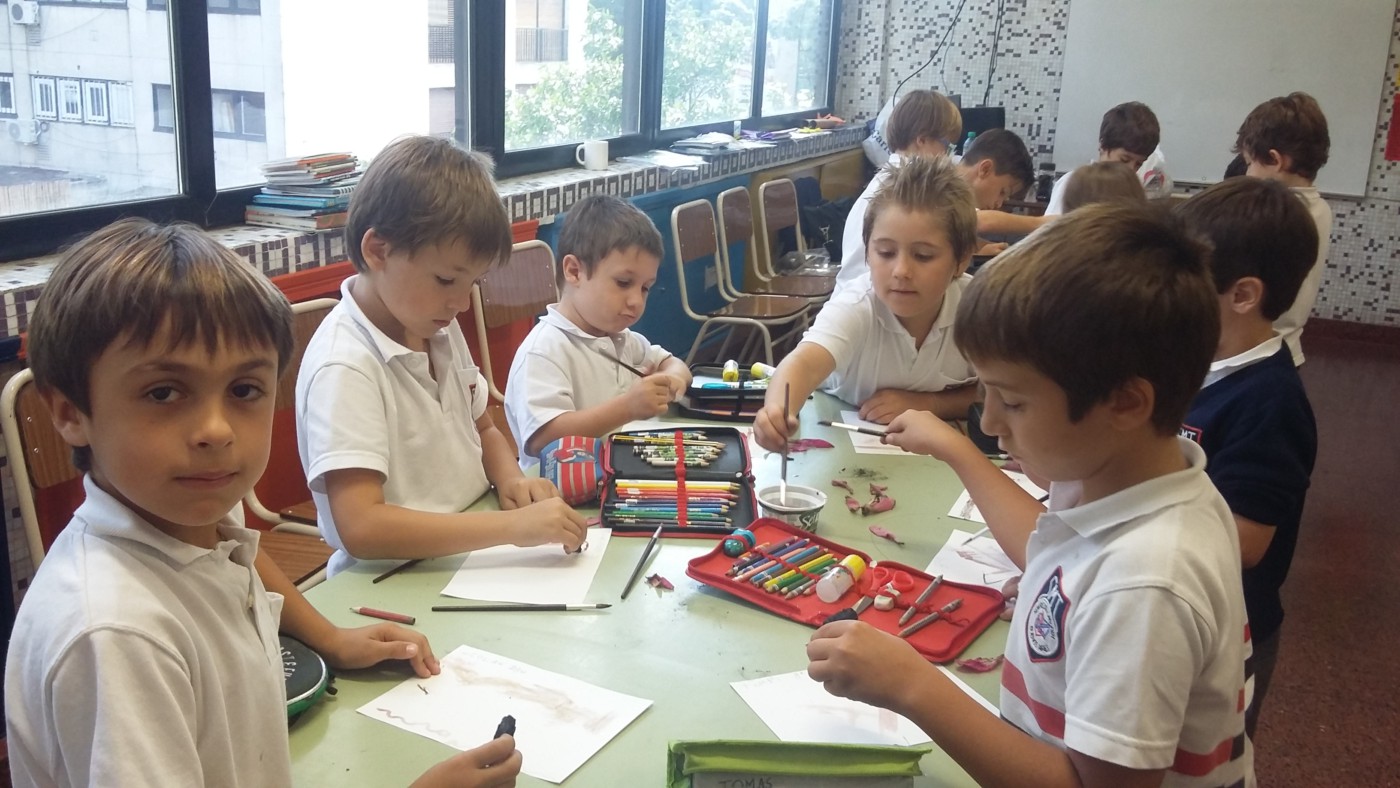 Los chicos de 1ro y 2do grado trabajaron las diferencias entre el mundo natural y el mundo artificial, y sobre los colores en cada uno de ellos, y realizaron una experiencia de pintura con elementos y pigmentos naturales,