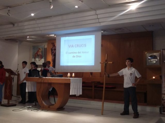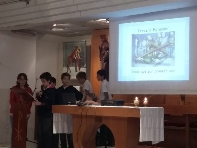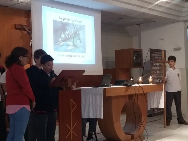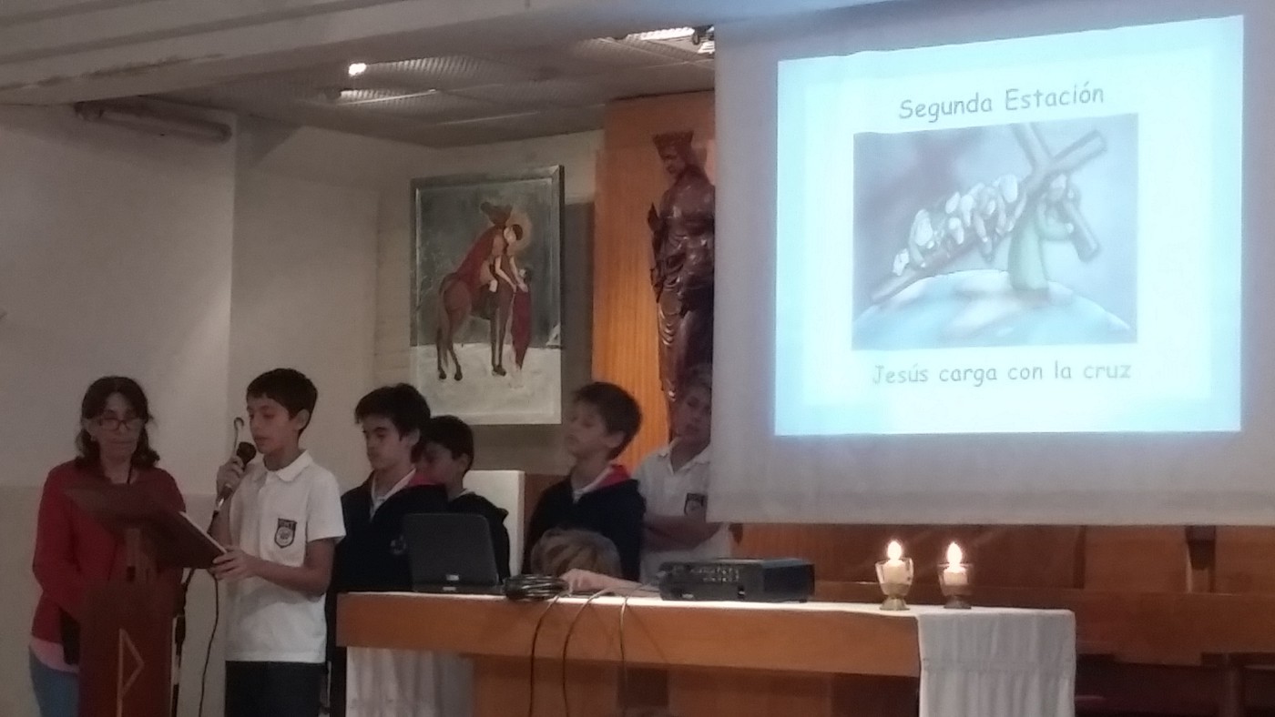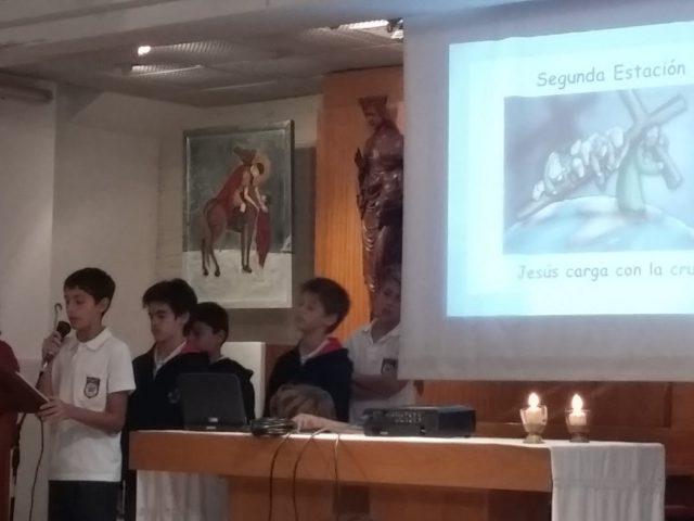 Los chicos de primaria compartieron un momento de oración haciendo el Camino de la Cruz, como parte de su preparación para Pascua.
