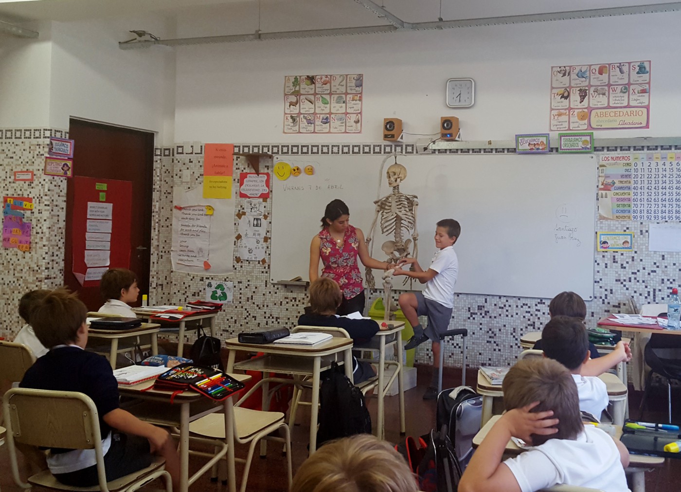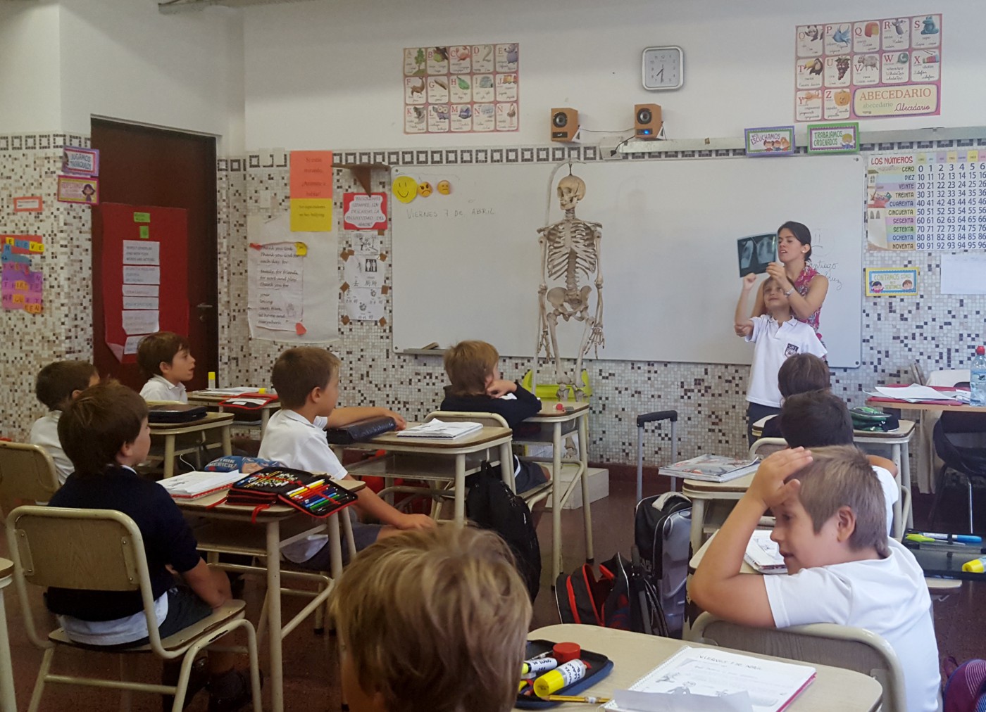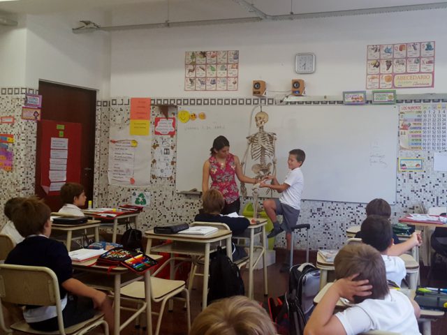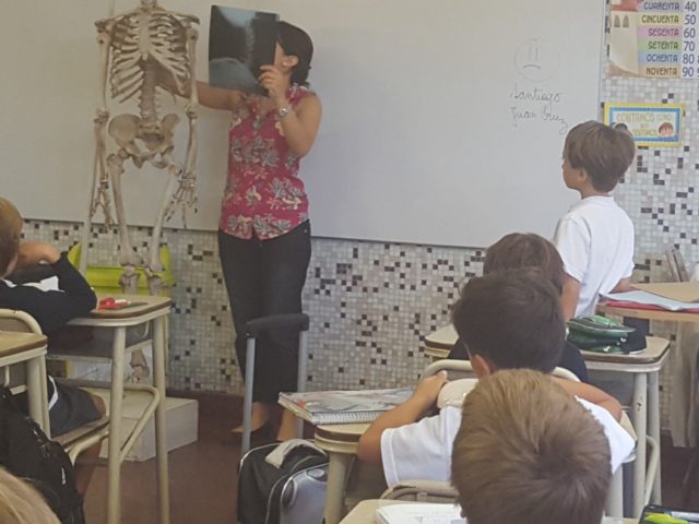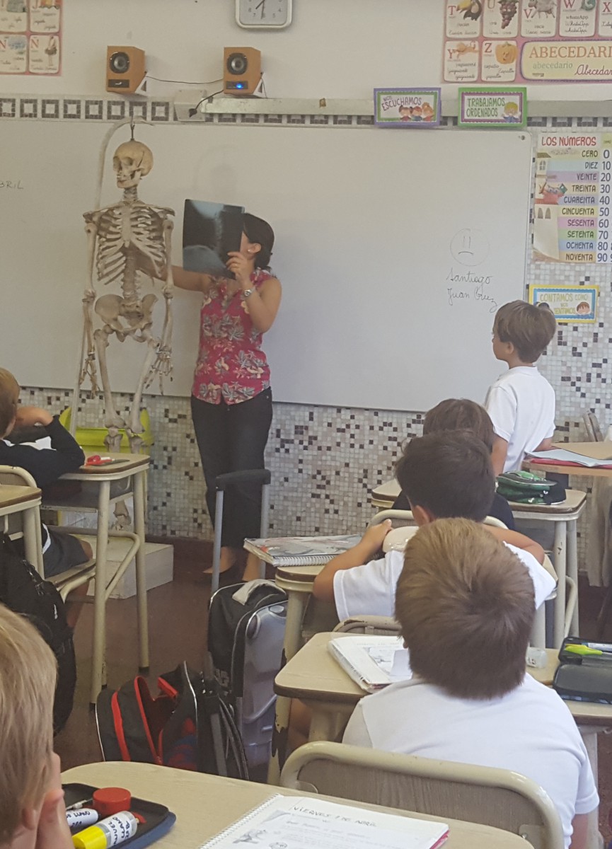 Trabajaron con el esqueleto del colegio, radiografías, abordando la temática de los hábitos y la alimentación saludables.