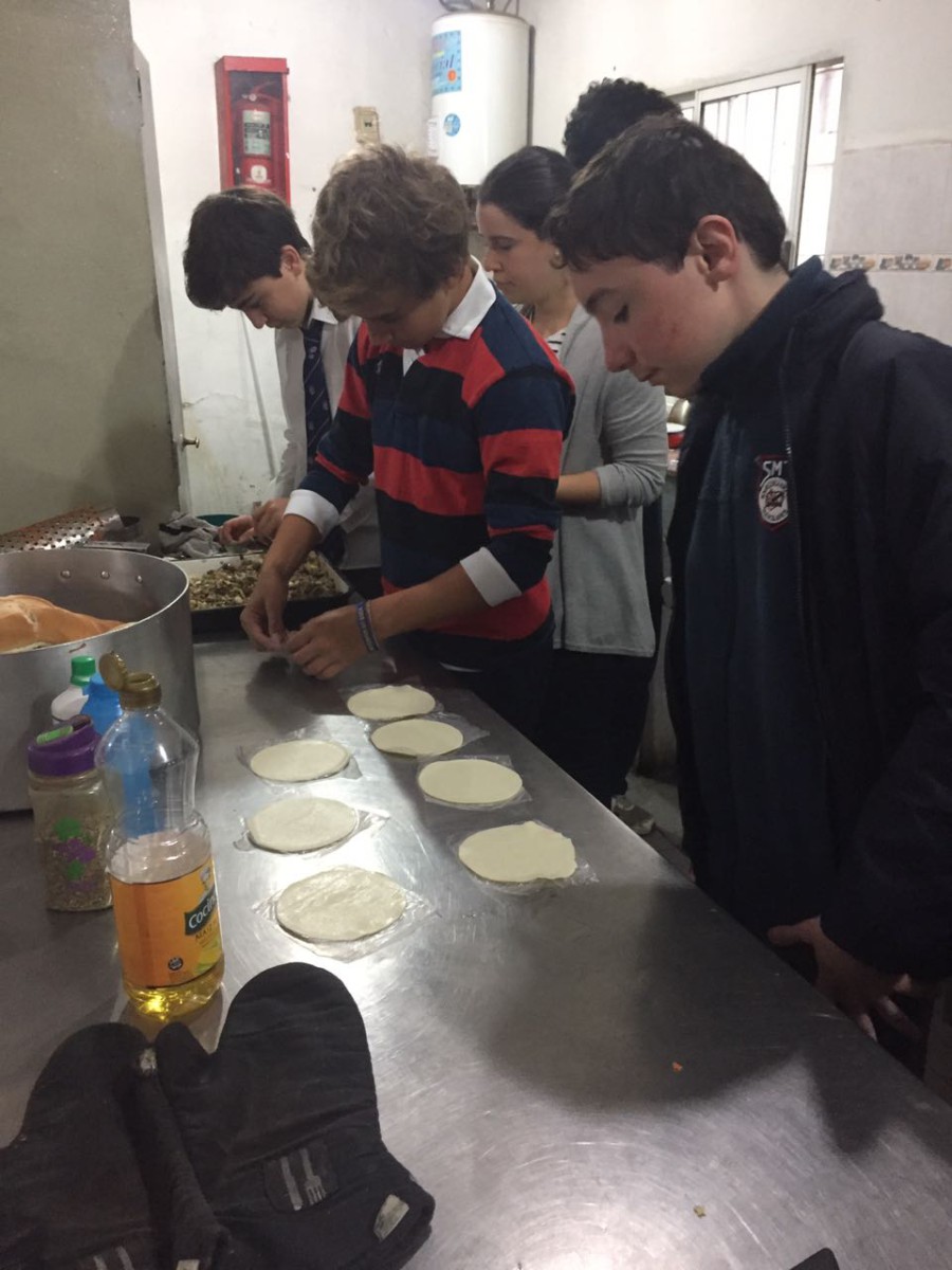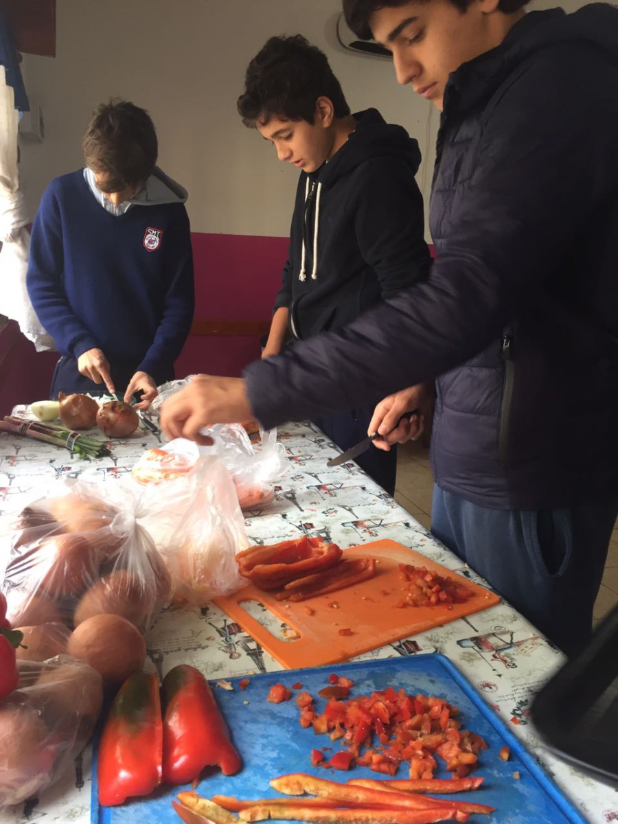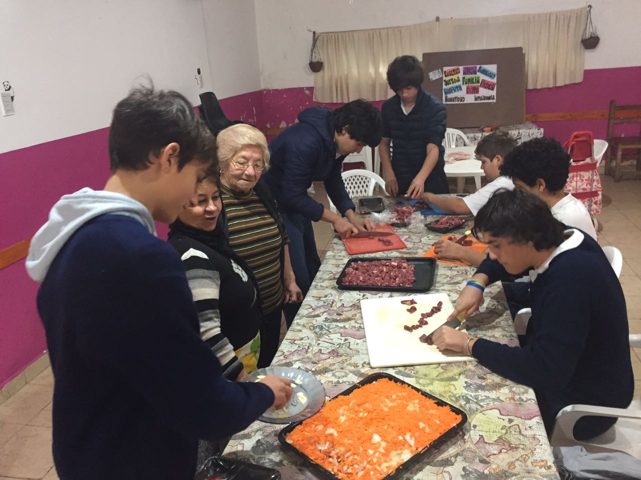 Como parte del proyecto Aprendizaje en Servicio, alumnos de 1° y 2° año concurrieron al comedor de adultos del Barrio Saldías, y organizaron un almuerzo para quienes concurren a este espacio. Se encargaron de todos los preparativos y compartieron la comida con ellos.