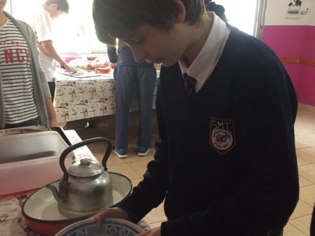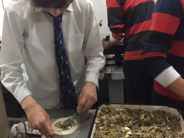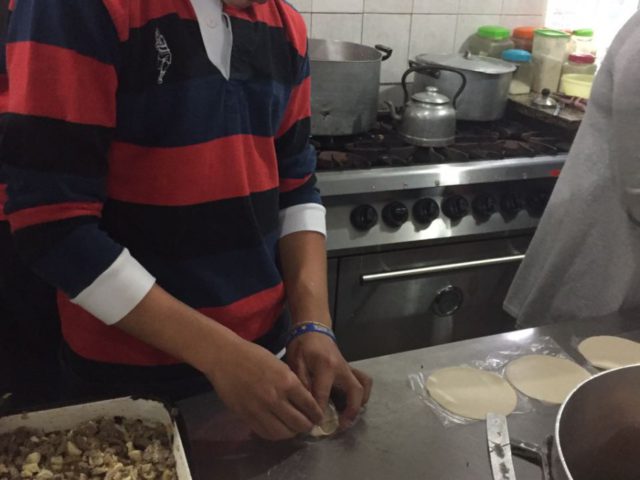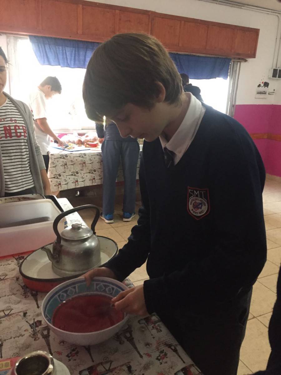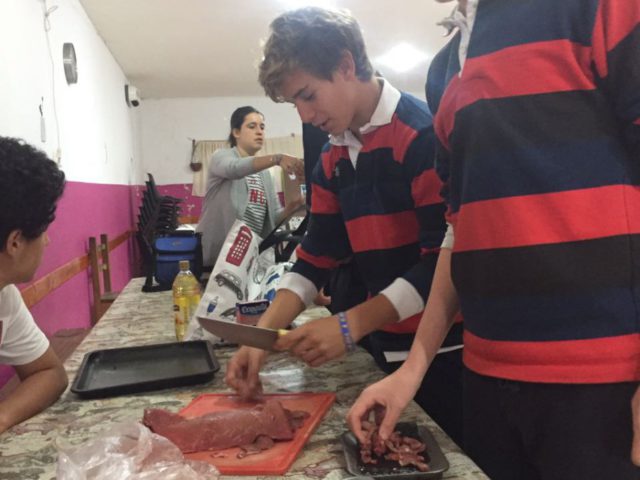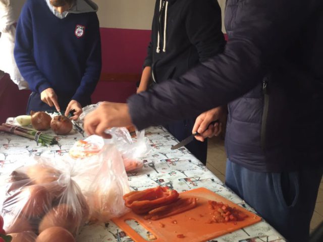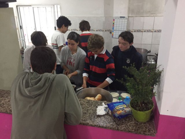 Como parte del proyecto Aprendizaje en Servicio, alumnos de 1° y 2° año concurrieron al comedor de adultos del Barrio Saldías, y organizaron un almuerzo para quienes concurren a este espacio. Se encargaron de todos los preparativos y compartieron la comida con ellos.