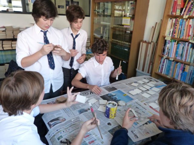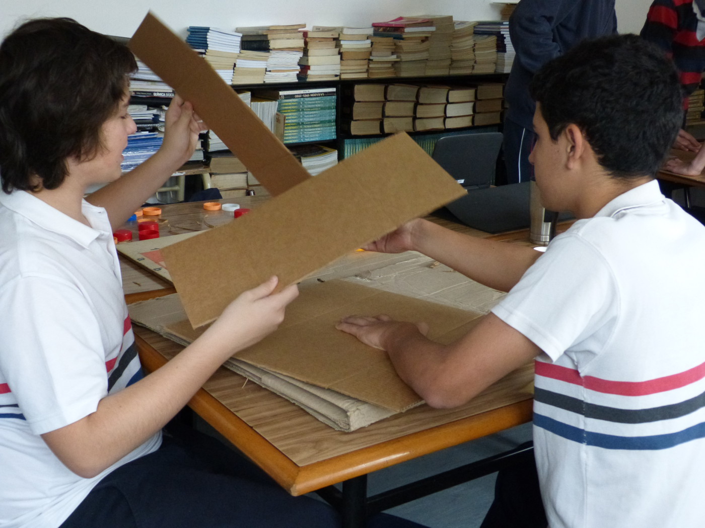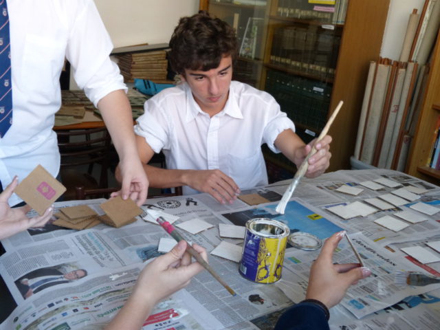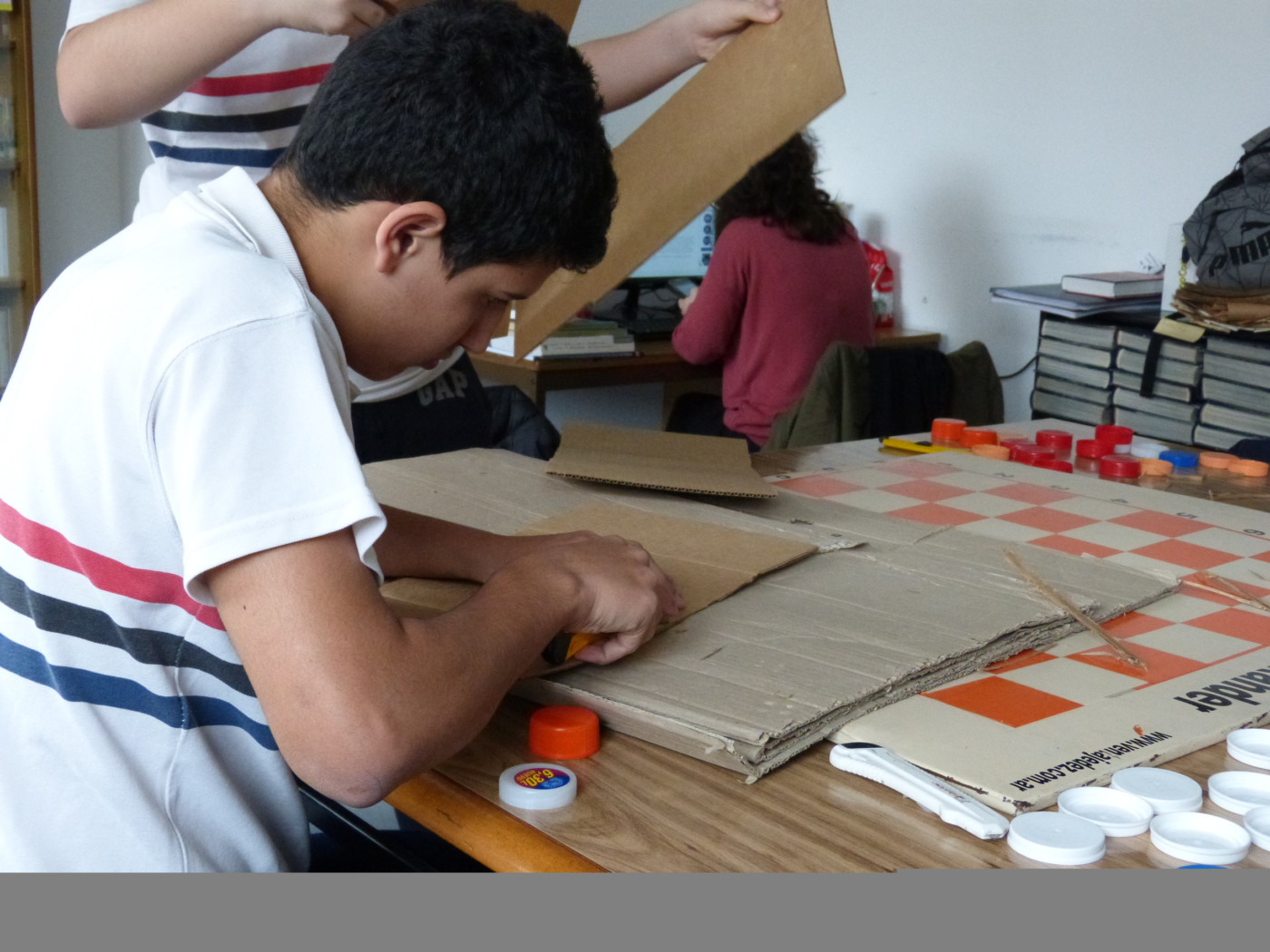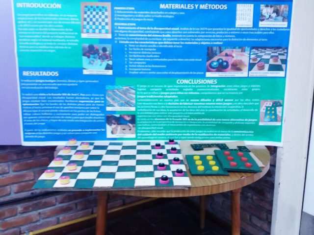 Un grupo de alumnos de 2do año comenzó a trabajar junto a las profesoras Patricia Vega y Pía Costabel, en la realización de juegos para no videntes, a partir del reciclado y reutilización de distintos materiales.