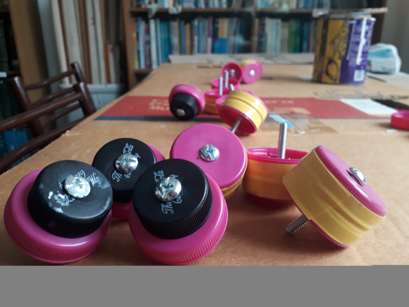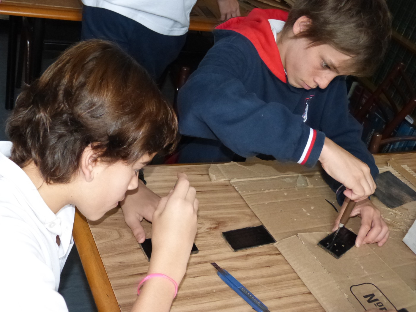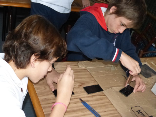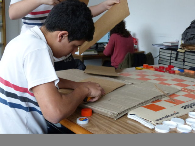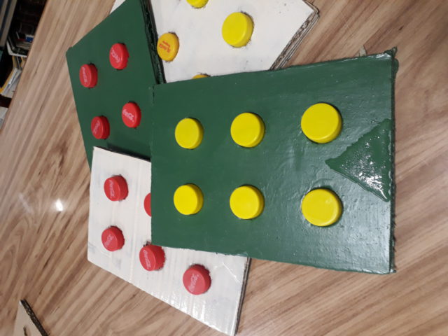 Los chicos se reúnen semanalmente y trabajan en el diseño y armado de los distintos objetos: juego dominó, juego de damas, ajedrez y “signo generador”, que es un elemento que las personas no videntes utilizan para aprender el alfabeto braille.