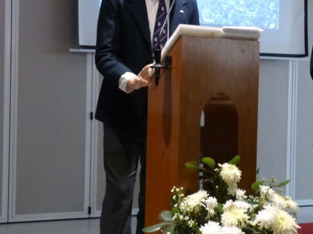Se recibió al General de brigada, veterano de guerra de Malvinas, Sergio Fernández con un desayuno junto a los directivos del colegio, y se le obsequió un presente recordatorio.
