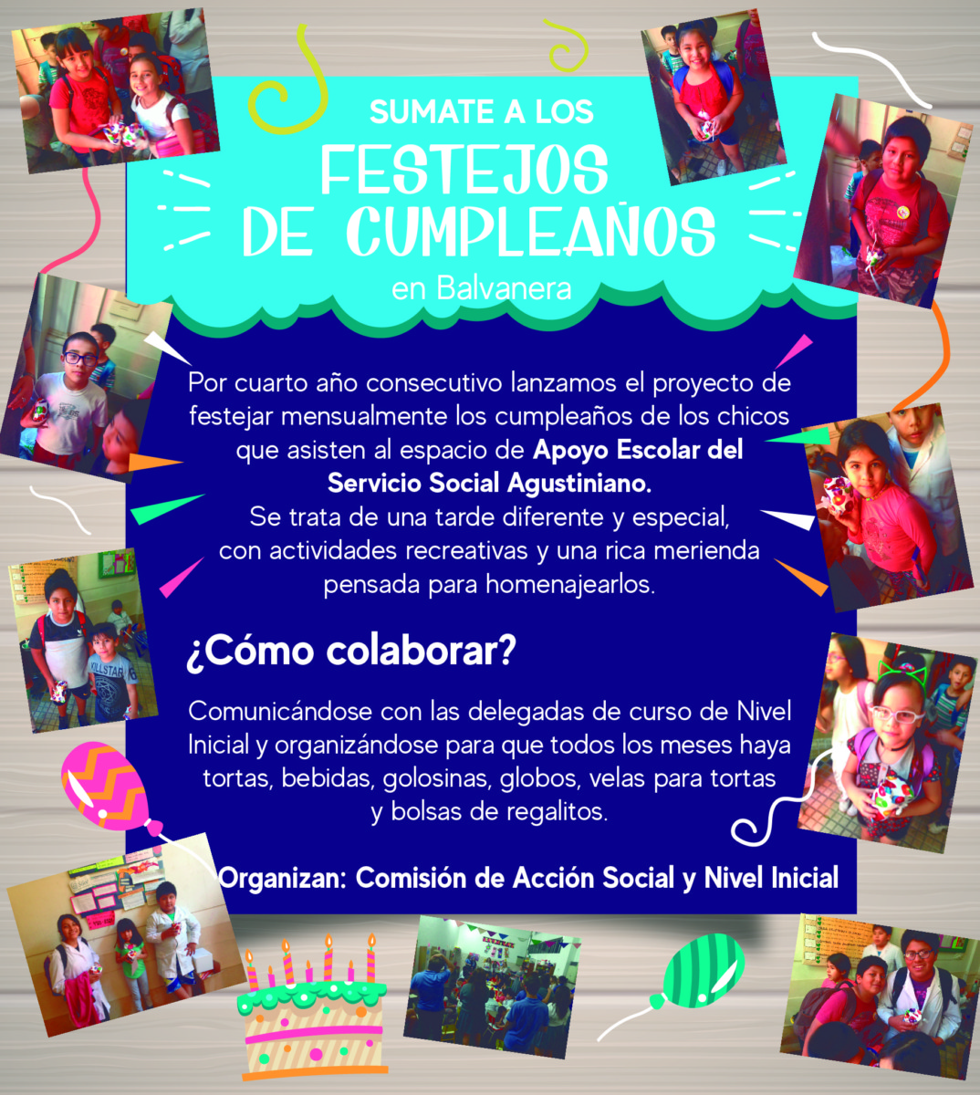 Mensualmente los chicos que concurren al espacio de Apoyo Escolar del Servicio Social Agustiniano, disfrutan la celebración de sus cumpleaños organizada como una tarde especial.