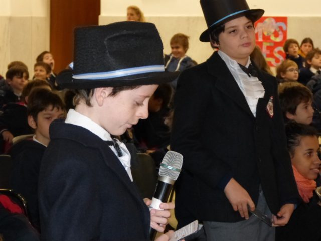 Para conmemorar el 9 de julio los alumnos de 5to grado presentaron una entretenida interpretación imanginando cómo habrían ocurrido los sucesos de 1816, si hubieran existido las redes sociales. Los chicos de 7mo prepararon el himno nacional en lenguaje de señas, y por último nos regalaron una hermosa canción.