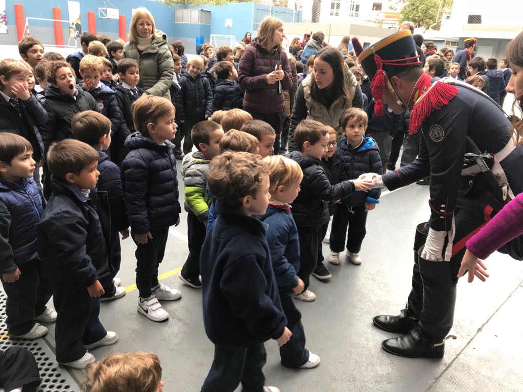 En el mes de la conmemoración del fallecimiento del General San Martín, recibimos la visita de Granaderos del Regimiento de Granaderos a caballo. Nos acompañaron en el izamiento de la bandera, nos contaron sobre algunas de sus tradiciones y nos enseñaron los nombres de las distintas partes de sus uniformes. ¡Gracias por su presencia!