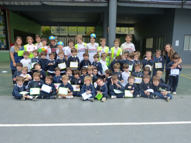 En el marco del proyecto institucional sobre educación vial, los alumnos de kínder 4 juntos con algunos chicos del Nivel Primario jugaron en un circuito con sus rodados teniendo en cuenta las precauciones y las señales de tránsito como peatones y circulantes viales responsables.
