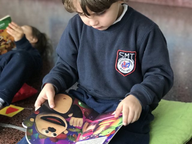 Momento literario en K3B 21 de mayo de 2019 Los chicos de Sala de 3 B comenzaron a acercarse al mundo de la Literatura, explorando y leyendo juntos distintos cuentos.