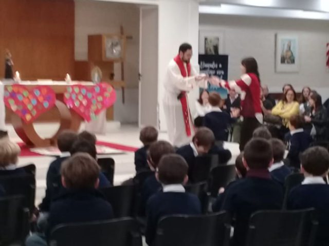 ¡Qué Celebración tan linda y emotiva vivimos! Los chicos se prepararon para recibir el Corazón de Jesús de manos de sus padres y en forma de agradecimiento dieron a ellos unos corazones de papel, con el deseo de que Jesús obre en ellos, los transforme, los haga más santos.